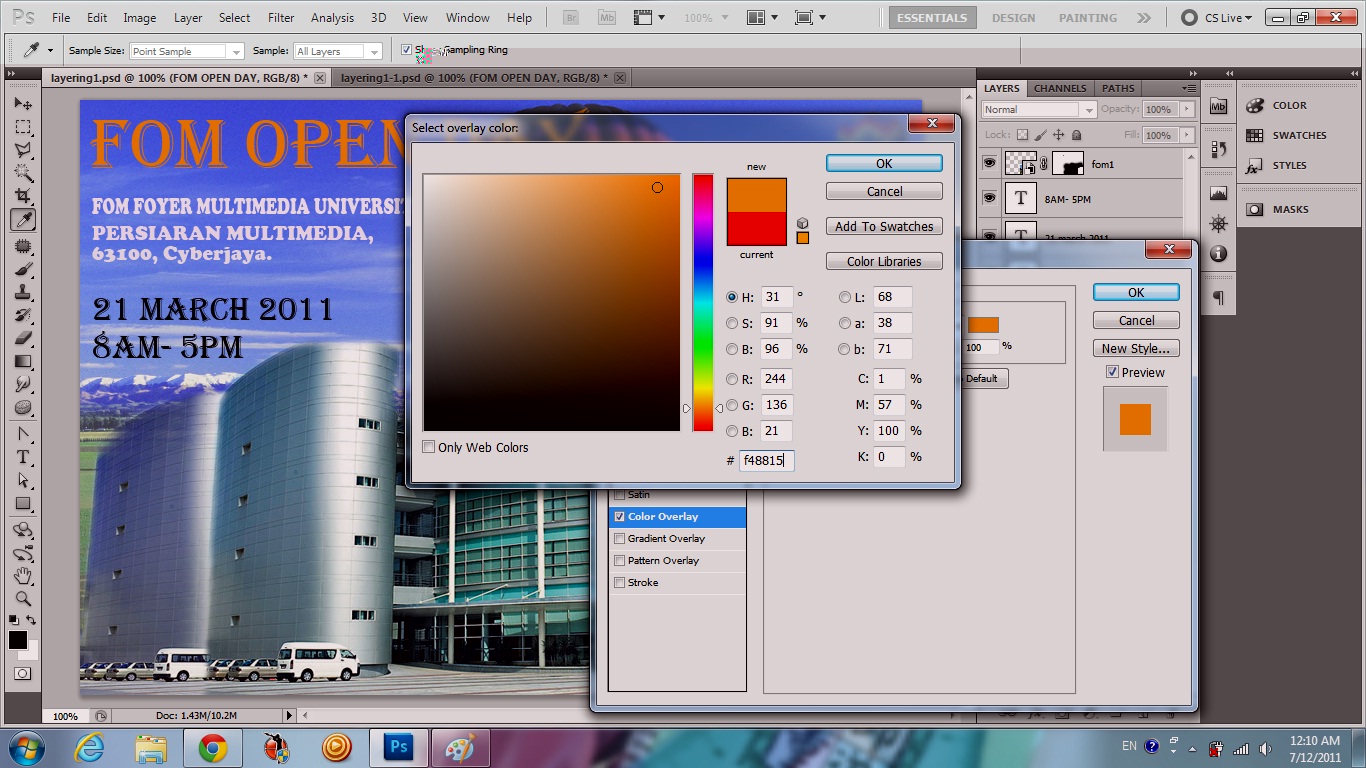 In this semester,we need to do 3 assignments for digital media 1. The first assignment is that we need to create E-wall paper. The title is FOM Open Day. Adobe Photoshop is used in this assignment. However, my internet server has problem. I had just upload half only. Also, the color of some pictures uploaded might have slightly different.